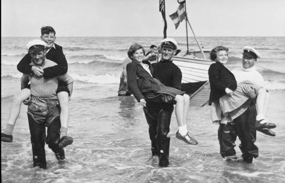 Bertie, center, carrying  passenger ashore.