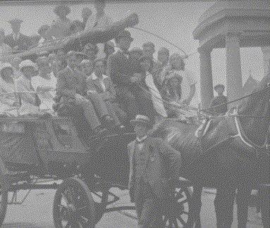 of an entertainer, and could attract a crowd, soon filling his carriage for the