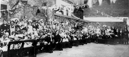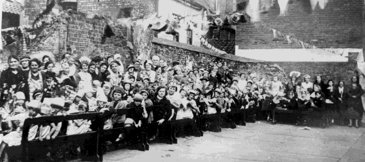 In the party photo., from no. 7, are seen Mr.and Mrs.Marshall, whose son George was a well known boxer at that time. Bella his wife was a chorus girl, but he pushed her down the stairs to her death when pregnant. He later married a blonde haired girl, who bore him two sons- Rodney and Ronnie; from no. 9, we see Mrs.Saunders; from no. 11, the mother of Mrs.Weldon, wife of Bert the grocer; from no. 12, Mrs.Ash, wife of Roland; from no. 13, Mrs.Clutton, wife of John, and sister of Mrs. Brunson, here from row 2 (no. 25, row 2); from no. 16, the house on the left of the photo, were Mrs. Wilgress and her daughter Doris. Also in the picture is the vicar from Gt.Yarmouth Parish Church, the Rev.Aitken, much loved, a man of the people. There is a memorial to him at the east end of the church, near to the alter. He was vicar during the period 1920-1941, dying on 14/12/41. His wife survived to see the re-consecration of the church in 1961, dying in 1962. The Rice family had been in the same house even before 1913, since Hannah Rice was the daughter of Michael Harvey. She previously married Michael Barber and had a daughter Louise, but Barber died in the first war, and Hannah took her child to live with her parents. One son, John, ("Joe") was in the army during the war, and later employed as a porter at St.Nicholas Hospital. He lived in extreme poverty, so it appeared, and after his mother's death he could not cope, but when he died in 1992 he left some £40,000, and no will! (died 24th. Nov 1992.) George Barber* and Hannah Myhill had seven children: Matilda (Tilly), was the eldest; then came- Hannah Louise, Hilda, Mary Bertha, Olive, Edward (Ted), and youngest was Isaac (*information amended 07.02.2009, see further detail). The girls were herring girls in the season,the rest of the year working at Grouts. This was entirely typical of those days, when one seasonal employment blended well with another. Also see re Barber's Wherry