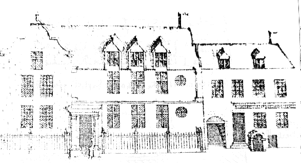 George Ward was constituted the first Mayor of Yarmouth, by the Charter granted in 1684.  George Ward, the younger, filled the office of Mayor in 1728, and in 1734 he contributed ten pounds towards the purchase of the gold chain.  He died in 1755 aged seventy four.  Gabriel Ward, the nephew and devisee under the Will of the first named, Geoffrey Ward, married Mary, daughter of Robert Mackye, merchant. He filled the office of Bailiff in 1689 and 1700, and left a son, Robert Ward, who was Mayor in 1729. He inherited the old family house on Church Plain, which was depicted in Corbridge's map. As Palmer says, it had a gable at the south end, and the remainder of the house had two storeys, the second in the roof with three dormer windows.