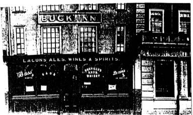 At the south‑west corner of the row,  was  a  public house called "The  Buck", and nearby was another, called the "Sir Samuel Hood".  Between Row 50 and old  Broad Row, was a house erected early in the 17th. century, with a square‑cut flint front.  It  was  later numbered as no. 65 George Street.  In 1749 it was the property of John  Eules, upholder,  but  much  later, towards the end of the century, it was purchased by Samuel Higham Aldred, who was the Adjutant of two separate Corps of Volunteers formed in 1798. They were increased in 1803 to six companies, and united into a Regiment  of local Militia, under the command of Lieutenant‑colonel Gould, Mr. Aldred retaining his post as adjutant. (the local militia was raised to counter the Napoleonic threat, rather like the Home Guard in 1940).