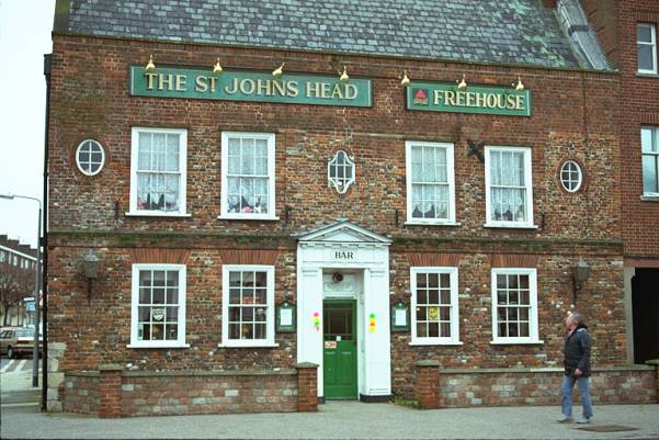 John's Head Row from the public house at the South‑West corner. For many years this represented the severed head of St. John the Baptist on