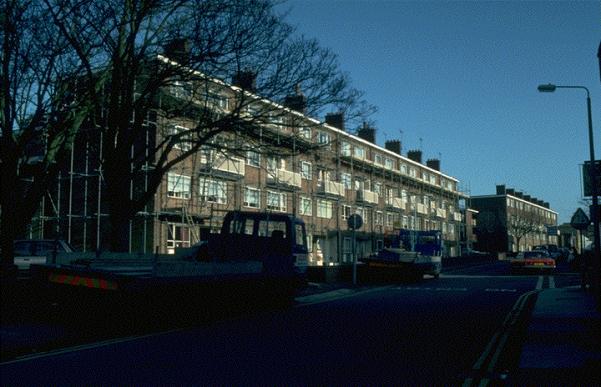 removed. Next to no. 22 near the east end of the row is an old wall with hit