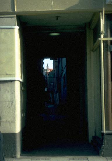 Sewell's Row has a large old  house (now made into three tenements in a  court), and a short alley off its north side.  There is also a good house  near the end of this row against Howard Street, and two others  on  its  south side,  all with sash barred windows of  the 18th.century. These stand  slightly back. Near to the Market Square on the north side is a tile hung house of three  storeys with sash barred windows, this house is part of Backs Saloon Bar.*3