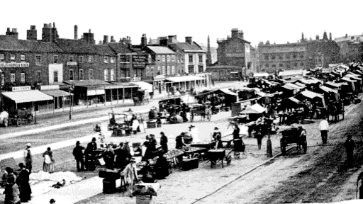 Pigott's Directory announces Ann Rudd, dealer in Turnery, Nags Head Row. This row has a covered east entrance  in common with most of the market rows, and the rear of this entrance is worthy of notice. The flat tiles extending to the roof, as used, are not often met with in the town.*2