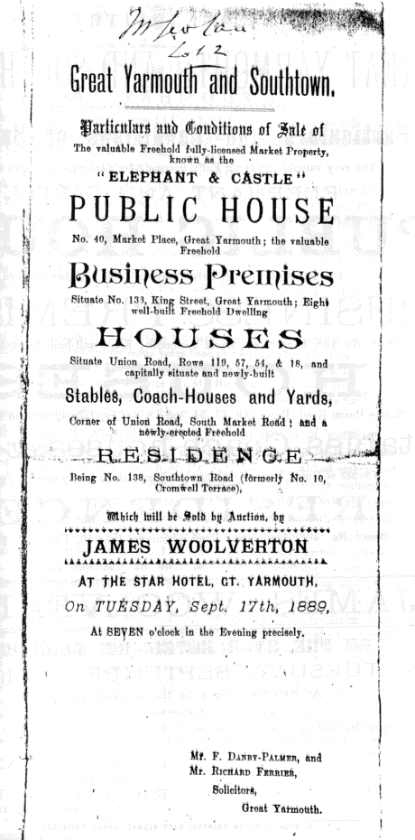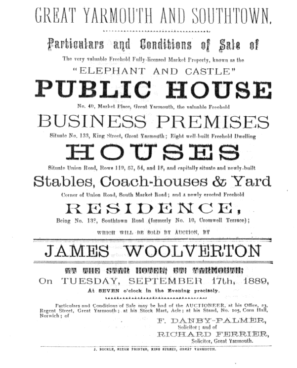 particulars of sale of six freehold cottages on 28th June 1906. At